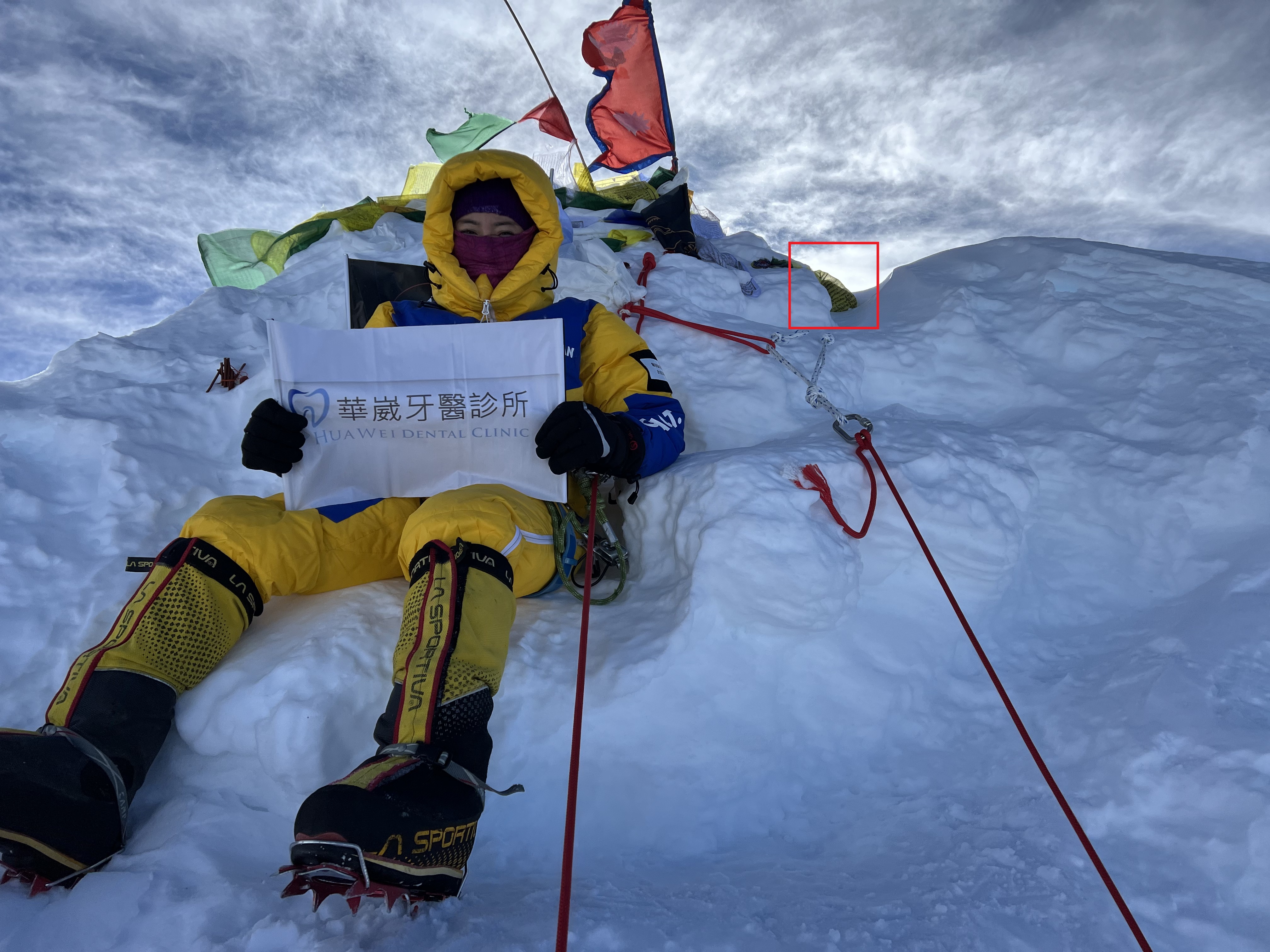 請您先想像曾格爾的登頂照片與影片中,天空中的雲去掉,換成一片藍天。